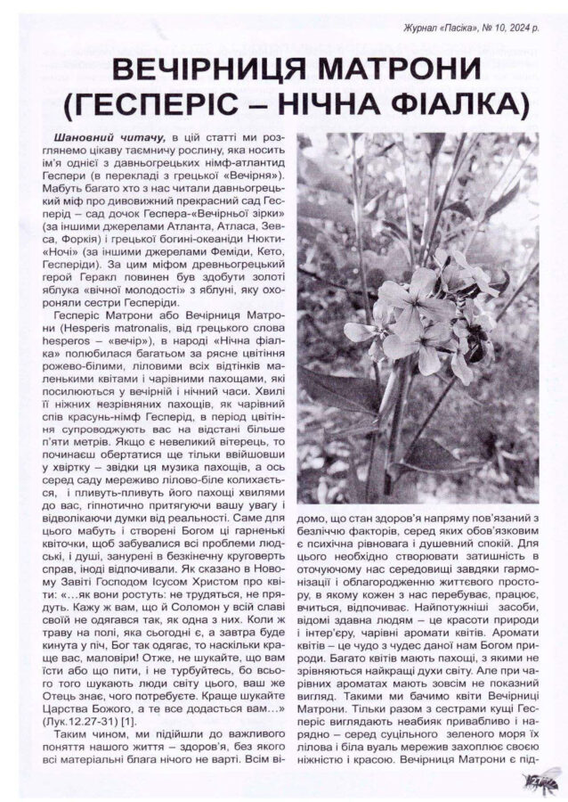 Вечірниця Матрони (гесперіс – Нічна фіалка)