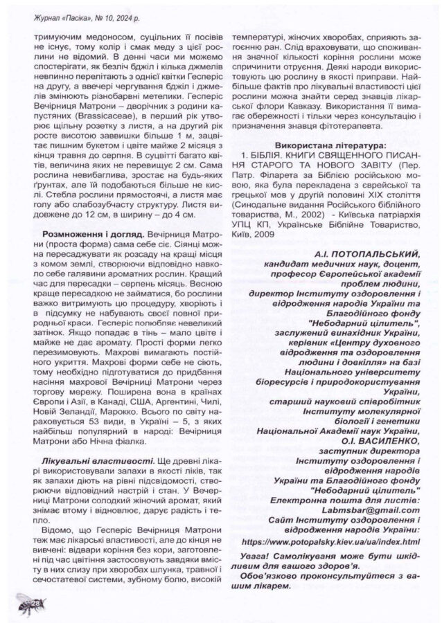 Журнал “Пасіка” N 10(378), 2024. -C.23-29