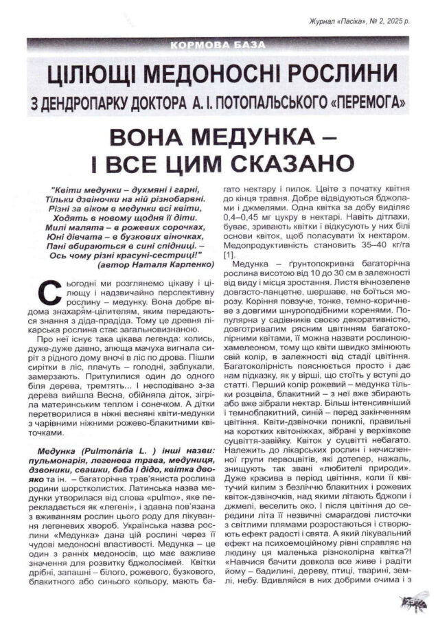 Журнал “Пасіка” N 2(382), 2025. -C.25-29